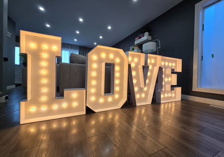 Rent out our 3 feet standing marquee letters for your party decor needs. Customize to match your budget.
